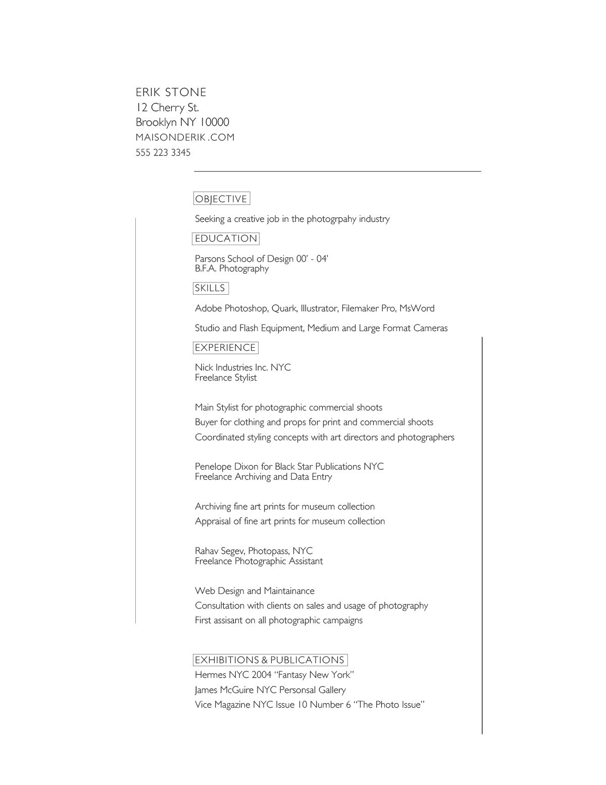 Resume Design for Erik Stone