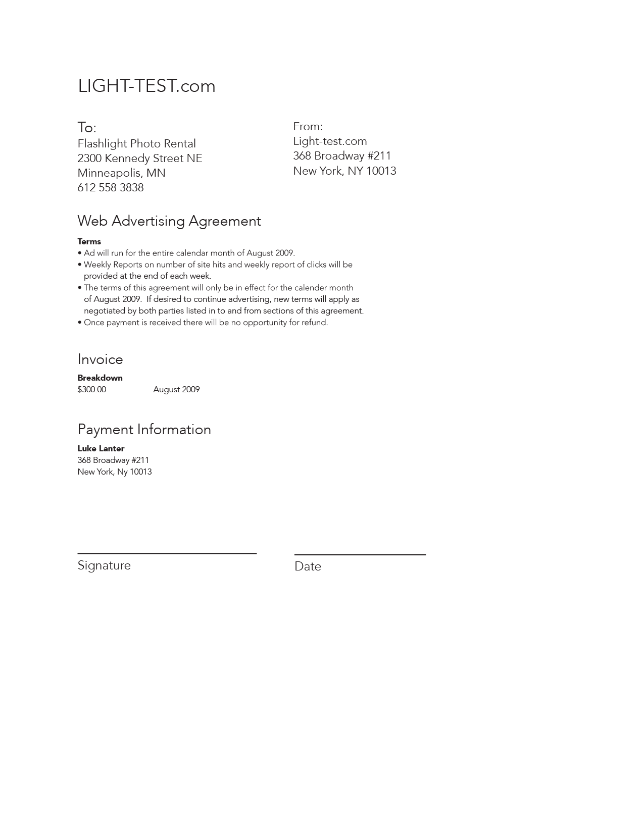Invoice Design for Light Test