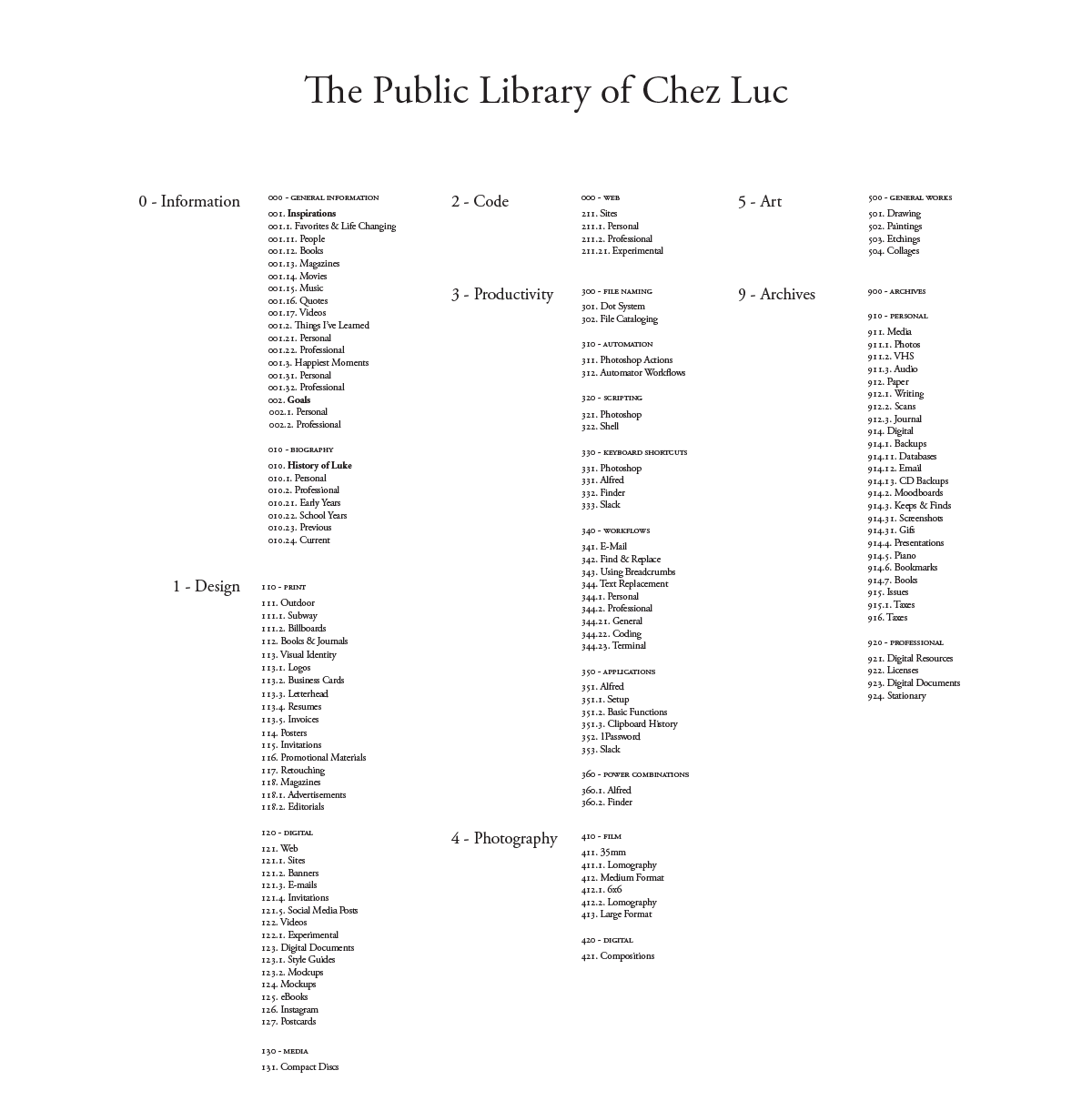 The card catalog I made for my website, using the Dewey Decimal System.