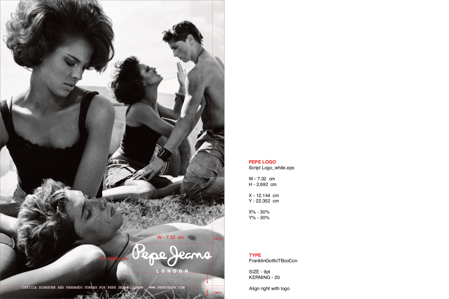 I prepared the print mechanicals for delivery for this Pepe Jeans advertisement. I placed the final artwork and retouched logos.