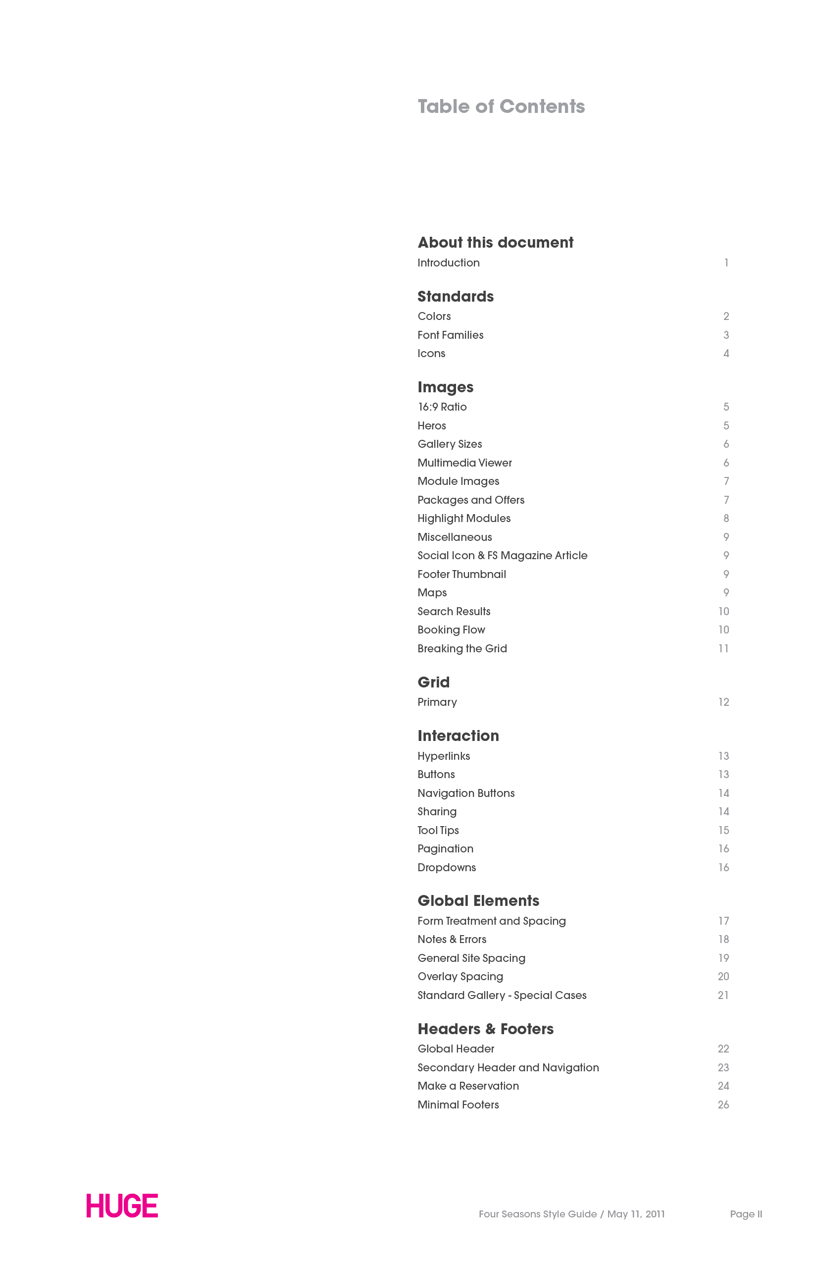 An style guide I created for Four Seasons. One of the biggest and most detailed I've ever created.
