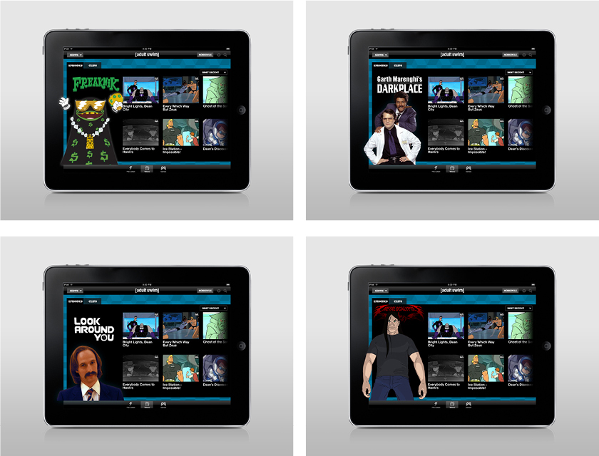 I created assets for Adult Swim's iPad app.