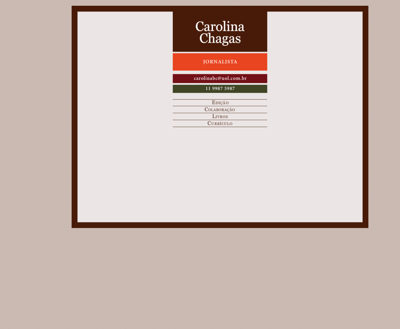 I code this site in flash for the journalist Carolina Chagas while at Estudai.