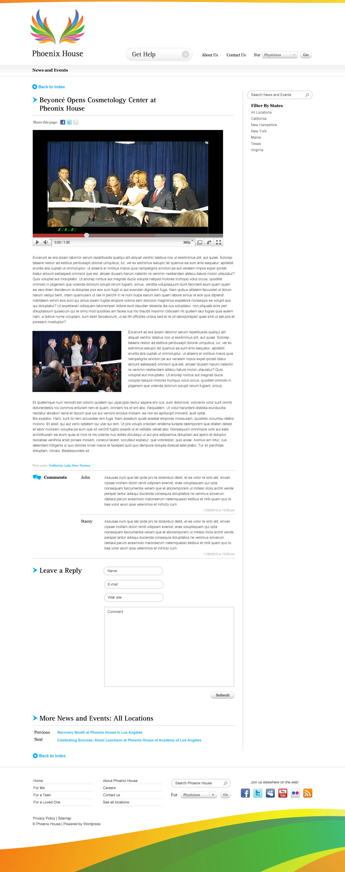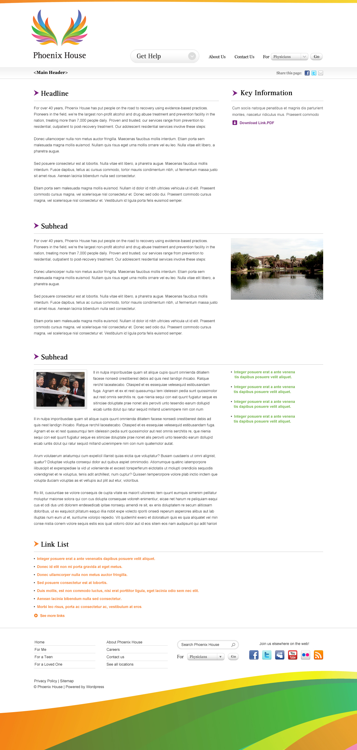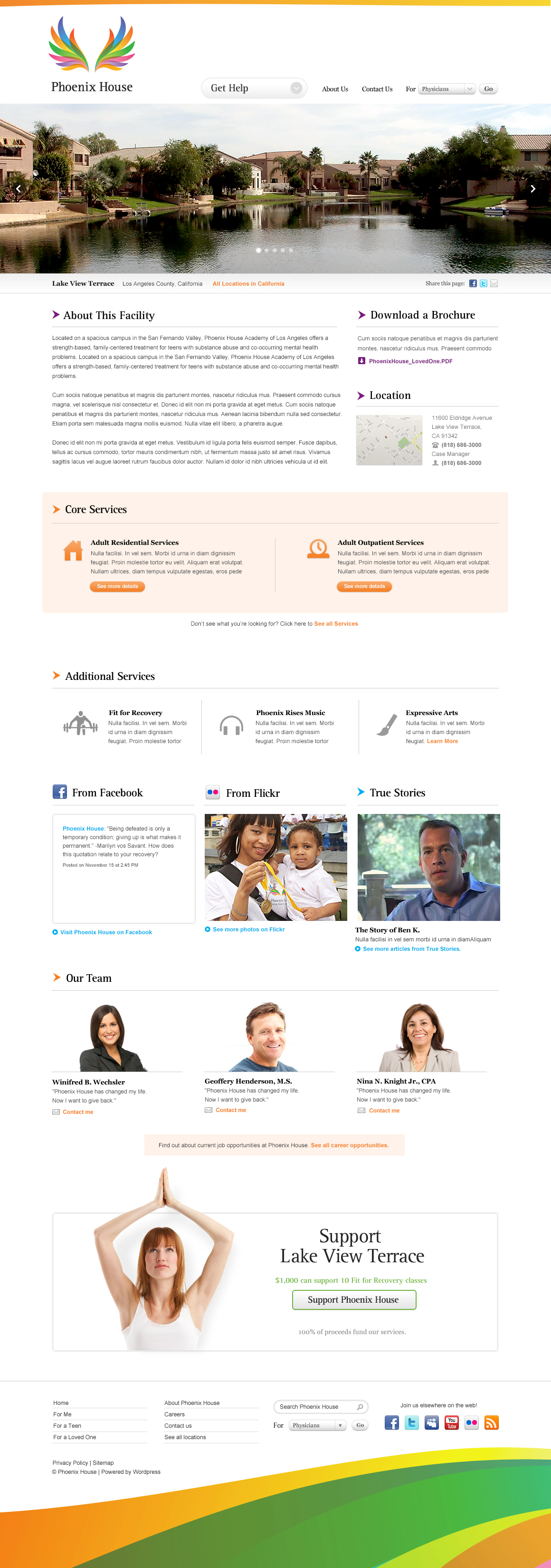 Under the direction and guidance of lead Visual Designer and Art Director, I took wireframes and content and created final designs for this site.