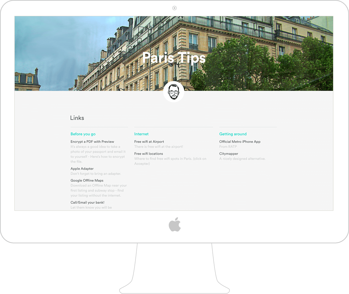 A concept I designed at Airbnb, a page with information about our cities in each office.